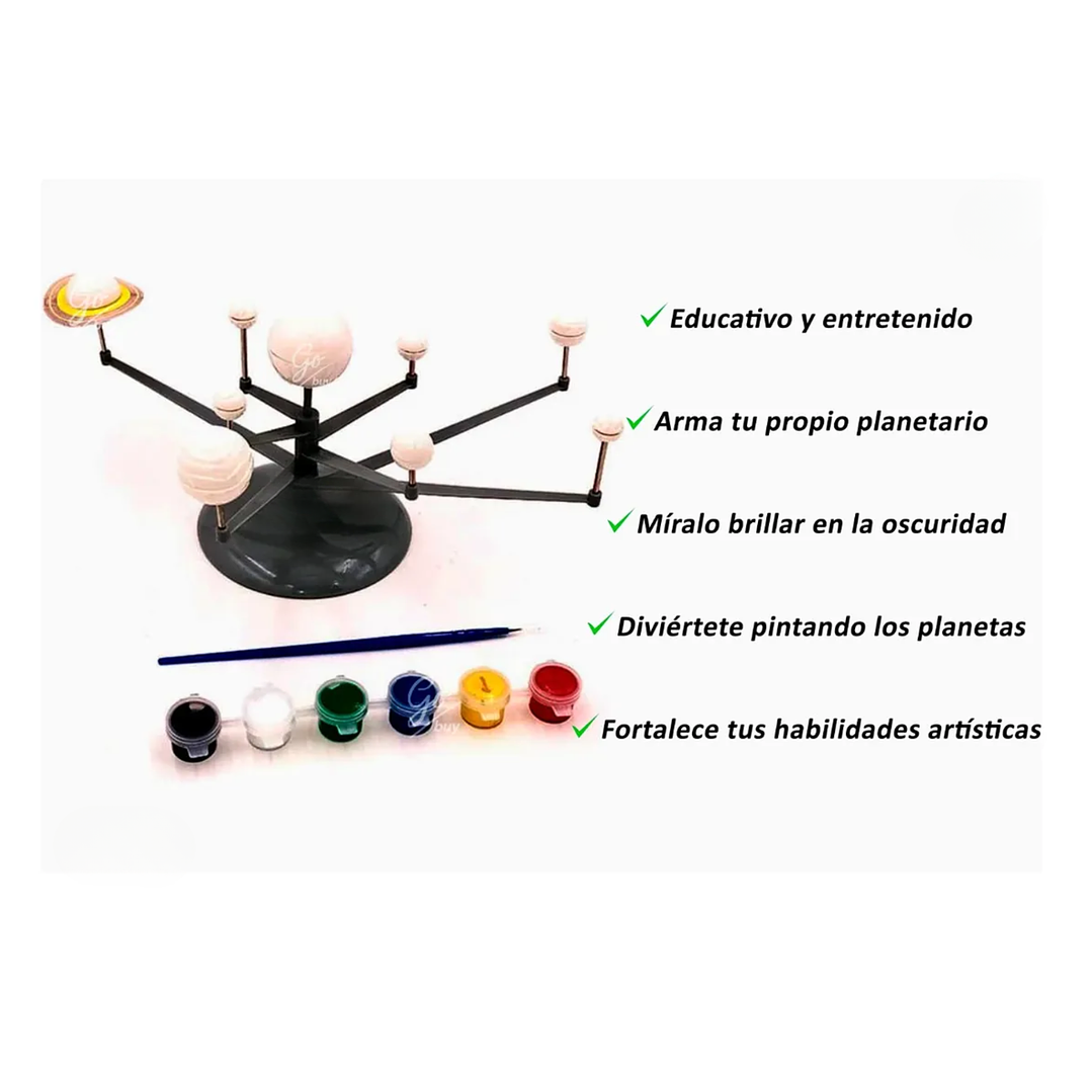 Explora el universo desde casa con este fascinante Kit del Sistema Solar Giratorio para Pintar, un juego educativo y creativo que permite a niños y adolescentes construir su propio modelo de planetario. Ideal para aprender sobre los planetas de forma práctica y divertida, este set estimula la creatividad, la imaginación espacial y la coordinación mano-ojo.